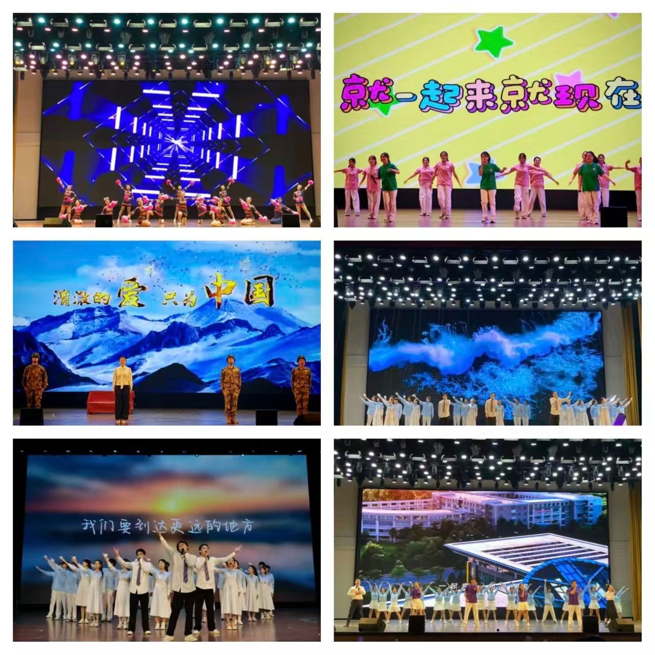 第三篇章“燃青春·向未来”,健美操《青春集结号》展现山一大青年的蓬勃朝气;歌伴舞《就现在》传递把握当下、勇毅前行的信念;情景朗诵《清澈的爱,只为中国》彰显新时代青年的家国情怀;合唱《破浪》道出山一大人直面挑战、勇毅冲锋的精神风貌。晚会在师生共同演绎的《爱在山一大,一起向未来》歌声中落下帷幕。