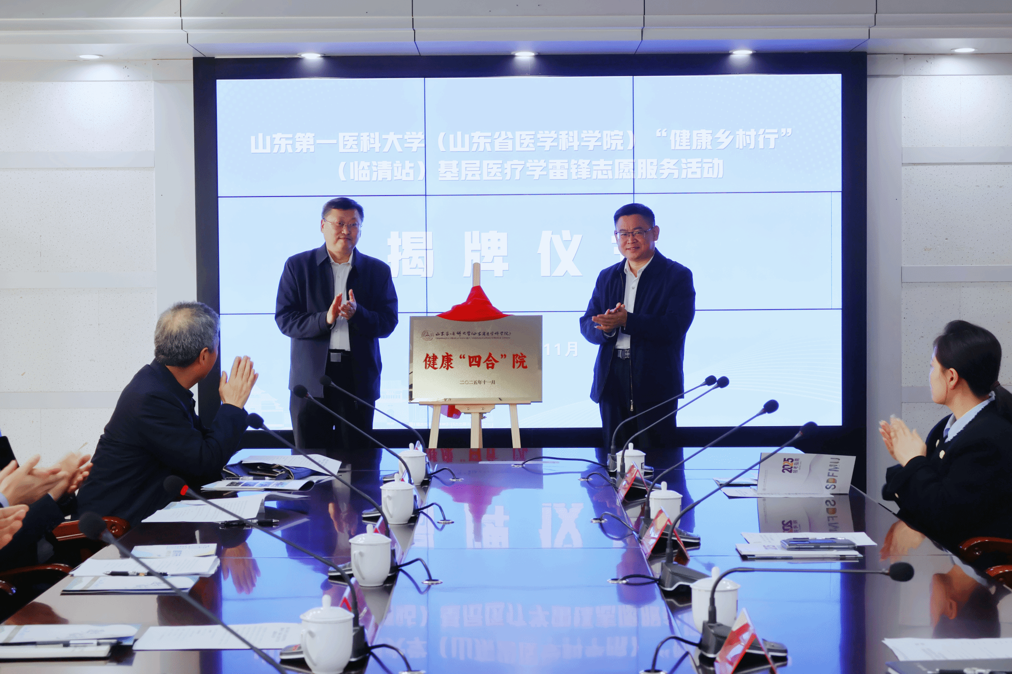 附属省立医院、第二附属医院医疗专家,宣传部、学生工作部、研究生院、公共卫生与健康管理学院、马克思主义学院、团委负责同志,临清市相关部门负责同志参加活动。