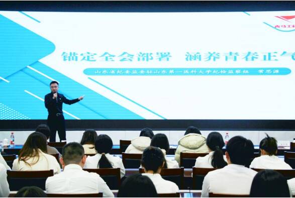 临床与基础医学院卢静老师和王文涵同学以《秉四中全会之魂,续以医报国之脉:战地医者夏云超与山一大青年的使命对话》为题,沿校史脉络,深入解读红色基因在山一大的孕育积淀与接续传承,激励学员们从校史奋斗征程中汲取奋进力量。