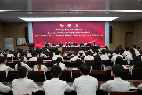 12月1日,校(院)青年马克思主义者培养工程2025-2026学年大学生骨干培训班开班仪式暨学习贯彻党的二十届四中全会精神“青年讲师团”微团课展示活动在济南校区举行,党委委员、副校(院)长贾海宁,党委委员、组织部部长闫栋出席会议。