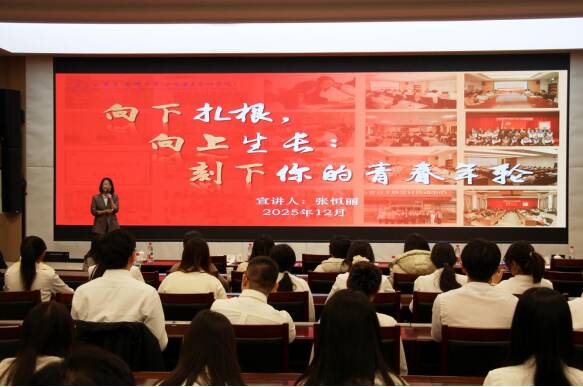 护理学院张恒丽老师的报告《向下扎根,向上生长:刻下你的年轮》,积极响应党的二十届四中全会对青年一代的号召,为学员指明了一条将个人奋斗融入国家蓝图的清晰路径:即以“向下扎根”的实践坚守练就过硬本领,以“向上生长”的理想追求引领人生方向。