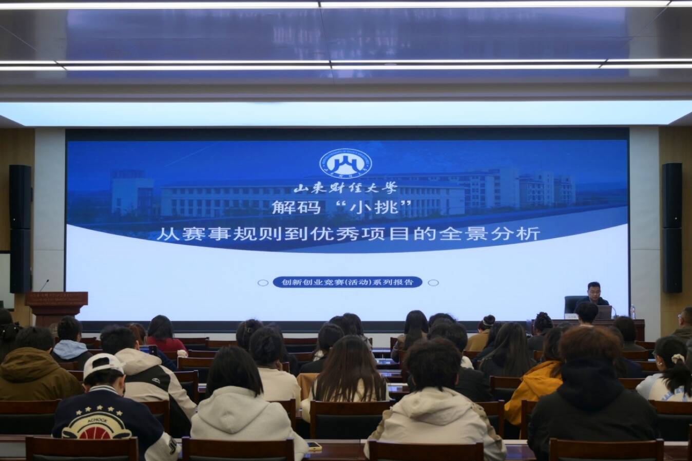 山东财经大学团委副书记谷学峰聚焦赛事规则,系统梳理“小挑”发展历程、参赛资格、七大赛道设置,清晰区分“小挑”重创业实践、“大挑”重学术科技的赛事定位,详解校赛—省赛—国赛三级赛程与评审规则,帮助同学们快速吃透赛事核心。